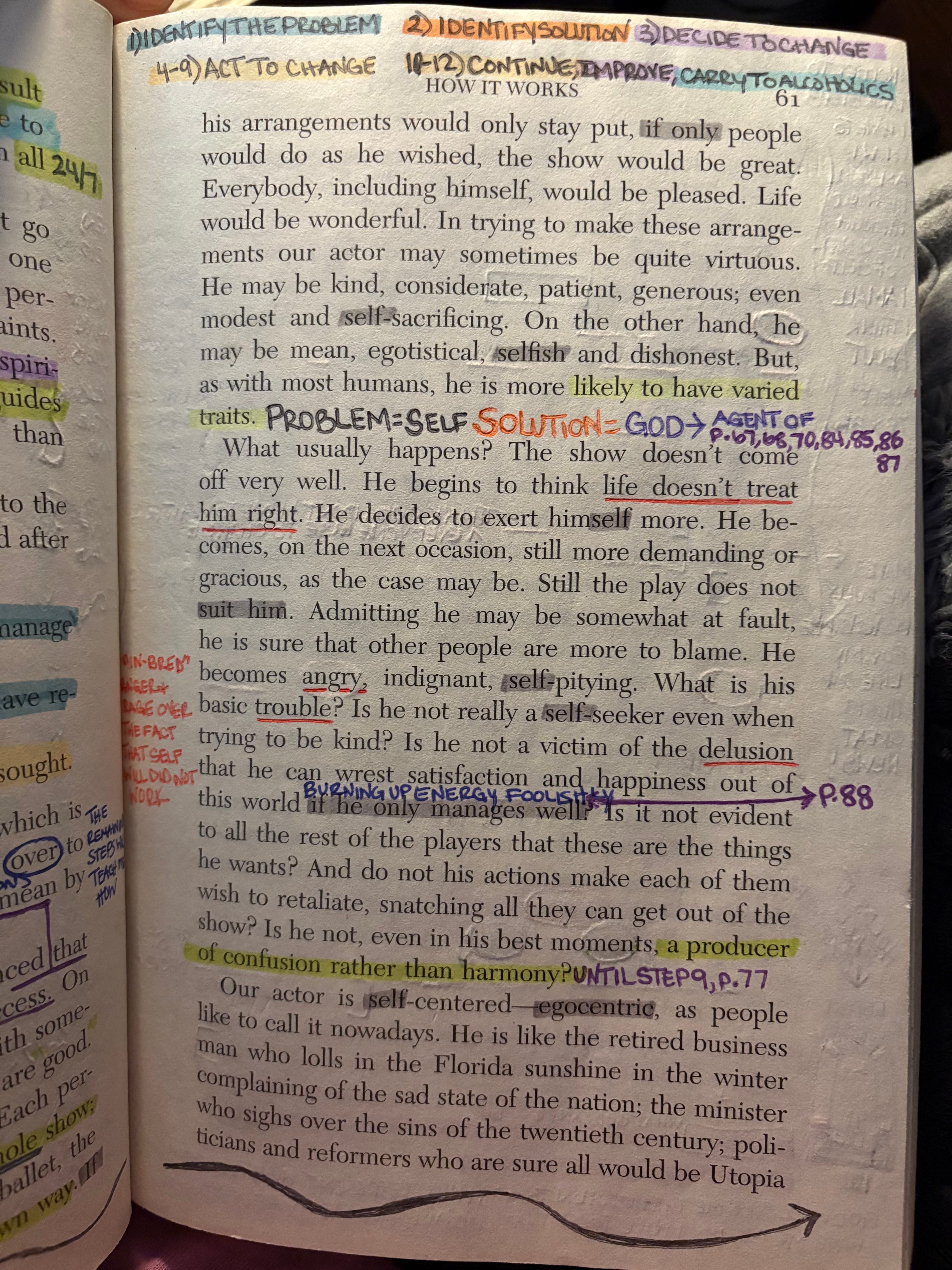I am self-centered — egocentric, as people like to call it nowadays. I am like the retired businessman, who lolls in the Florida sunshine in the winter complaining of the sad state of the nation; the minister who sighs over the sins of the 20th century; politicians and reformers, who are sure all would be Utopia if the rest of the world would only behave; the outlaw safecracker who think society has wronged him; and the alcoholic, who has lost all in his locked up. Whatever my protestations, am I not concerned with myself, my resentments, or my self-pity?